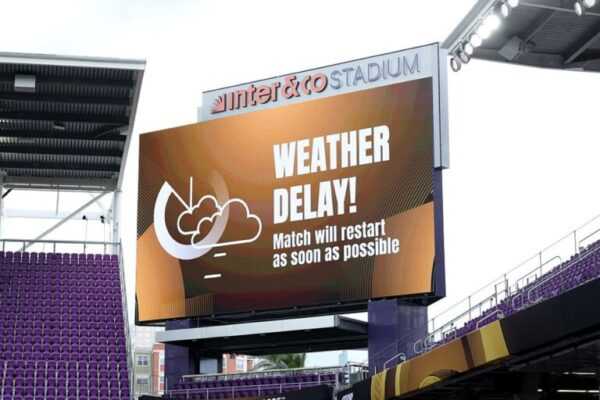 Poucos minutos antes de começar o jogo, que estava prevista para começar às 19h, os telões do Orlando City Stadium anunciaram que o jogo seria postergada e que reiniciaria quando fosse capaz.